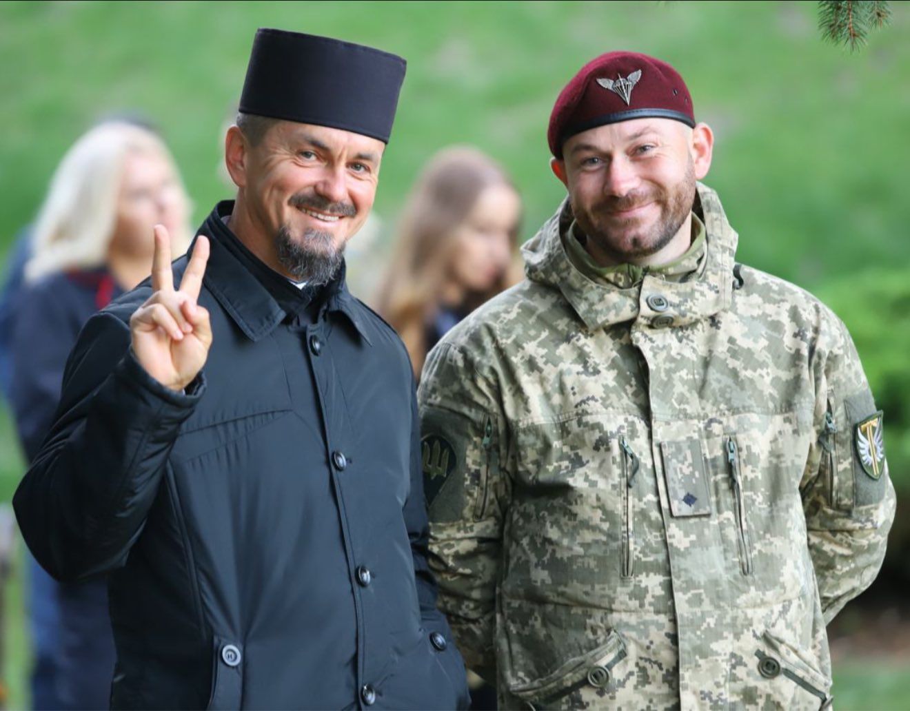 Ієромонах Макарій Дутка (ліворуч) збирає мільйони гривень для ЗСУ