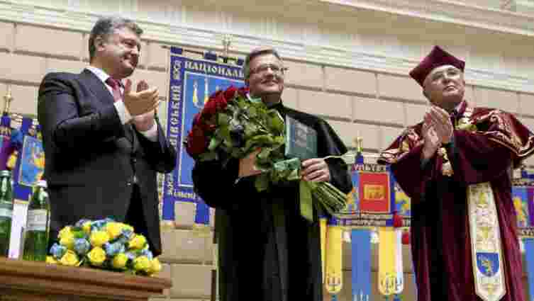 Президент Польщі Броніслав Коморовський 2 липня отримав диплом почесного доктора Львівського наіонального університету імені Івана Франка. Про це у своєму мікроблозі у Twitter повідомив посол України у Польщі Андрій Дещиця.