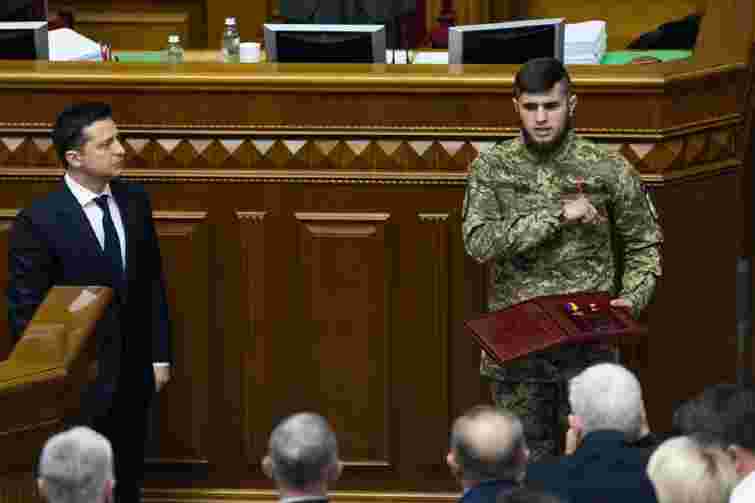 Першим Зеленський нагородив командира 1-ї окремої штурмової роти ДУК «Правий сектор» Дмитра Коцюбайла. За особисту мужність, виявлену у захисті суверенітету та територіальної цілісності, Коцюбайлу було присвоєно звання Герой України з врученням ордена Золота зірка. Указ про нагородження також опубліковано на сайті президента, він датований вчорашнім днем.
