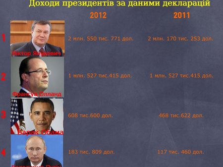 Нагадаємо, в оприлюдненій декларації про доходи за 2012 рік президент Віктор Янукович вказав, що загальна сума його доходів сягнула 20 млн 388 тисяч 314 гривень. Із цих грошей 774 тисячі – зарплата. 15,5 млн грн – авторська винагорода від друкарні «Новий світ».