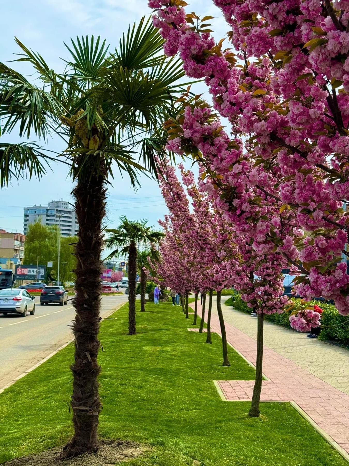 Днями місцеві мешканці Ужгорода почали публікувати в соцмережах фото екзотичних для України дерев – пальм. Зазначається, що рослини висадили на вул. Баб’яка, 1, поруч із Боздоським парком, між молодими сакурами, які висадили там раніше.