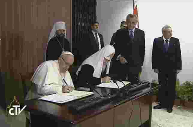 12 лютого в Гавані на Кубі відбулася перша в історії зустріч Папи Римського Франциска і патріарха Російської православної церкви Кирила. Їх розмова тривала понад дві години. За підсумками зустрічі була підписана спільна декларація, повідомило «Радіо Ватикану». Пункти 26 і 27 декларації безпосередньо стосуються України.