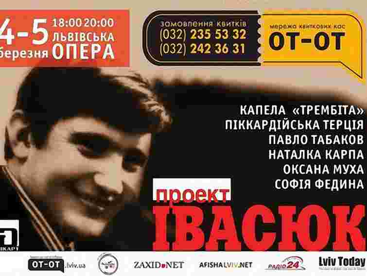 У Львівській опері 4 та 5 березня пройде «Мистецько-музичний проект ІВАСЮК». Ця подія відзначиться серією концертів з нагоди 64-річчя від дня народження Володимира Івасюка. Пісні відомого українського композитора та поета прозвучать в новій інтерпретації академічної капели «Трембіта» та зірок української сцени.