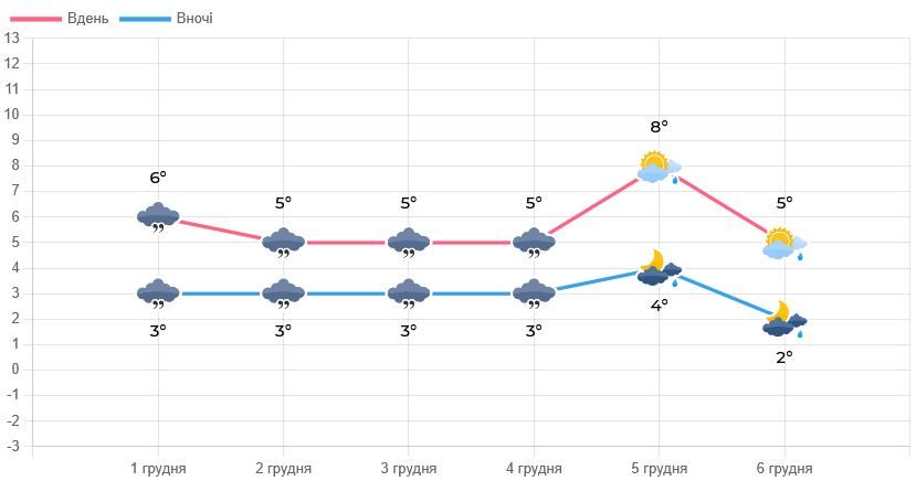 Прогноз погоди у Львові та області на 1-6 грудня (графіка Львівського гідрометцентру)