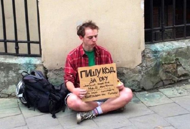 У Львові неодноразово заявляли, що місто є ІТ-столицею України. Мовляв, ніде немає таких комфортних умов для програмістів, як тут - саме тому їх у Львові так багато. Молодий львівський ІТшник Богдан Прокопович вирішив перевірити, яку реакцію викличе в перехожих програміст, який жебракує. Для цього хлопець сів у центрі міста із жартівливою табличкою. Результат експерименту виявився для Богдана неочікуваним. ZAXID.NET публікує його історію.