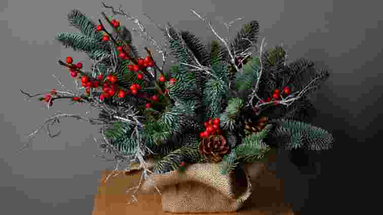 Тут спектр дуже широкий. З чого можна зробити новорічну композицію? З хвої, гілок, квітів, новорічних іграшок, гірлянд, бус, цитрусів, прянощів, цукерок, шишок, жолудів, свічок, сухоцвітів, моху, красивого паперу, тканини, стрічок. Це може бути зимовий букет у вазі, вінок на столі зі свічками або на дверях із цитрусами та корицею, композиція у великих чашах, мисках або коробках. Перелік обмежується лише вашими можливостями та фантазією.