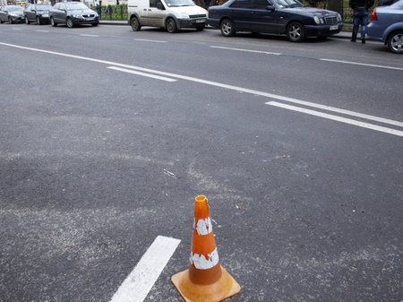 Тим часом вже на ранок 7 листопада від напису на асфальті залишилися лише малопомітні білі плями.