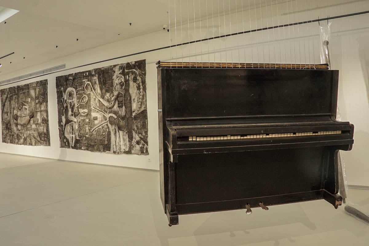 Експозиція розташована на третьому поверсі (принагідно хочеться потішитись тому, що простір відчутно змінився у кращий бік), а крізь скло можна бачити, як на другому розташувалась інсталяція Кауфмана «Волонтери». Цього разу вона трансформована у глядацьку залу, де її «персонажі» завмерли, слухаючи ще одне підвішене та препароване піаніно, як ще один зразок резильєнтності.