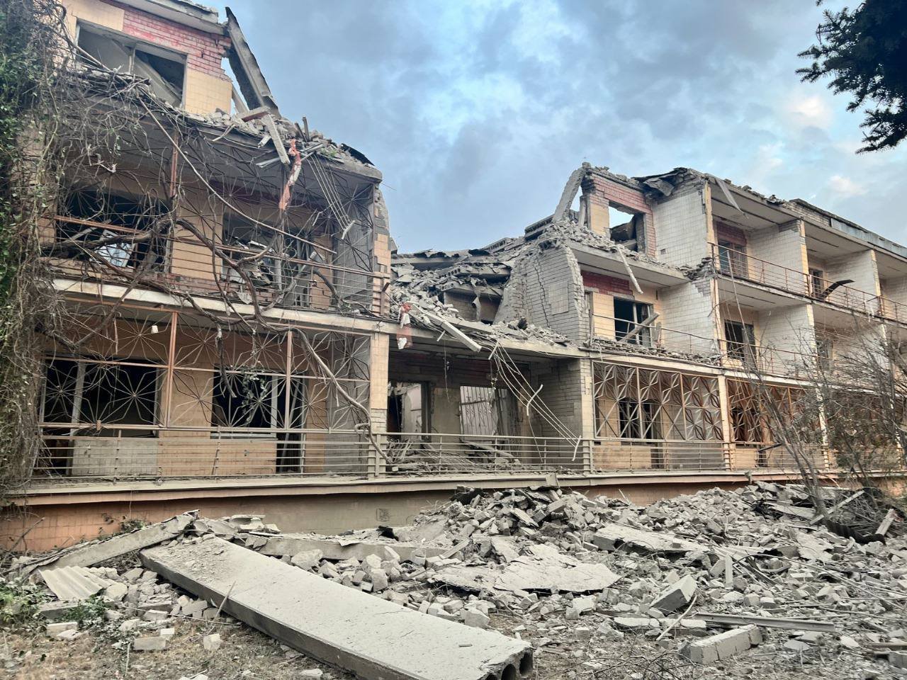«Будівля готелю зруйнована з першого по третій поверхи», – написав Сергій Лисак.