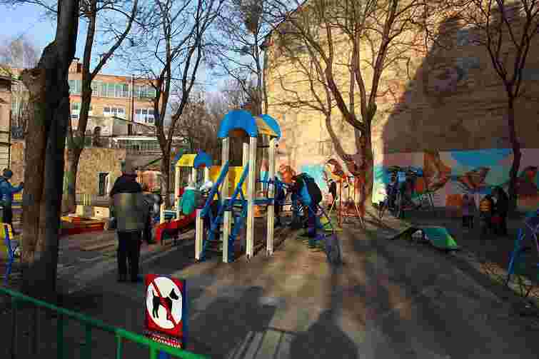 «Дитячий майданчик був розроблений архітекторами проекту з урахуванням потреб дітей різного віку, - розповідає Ярина, - у роботі намагались поєднати набір стандартного обладнання для цього типу локації із бажанням мешканців створити якийсь нетиповий майданчик для наймолодших діток».