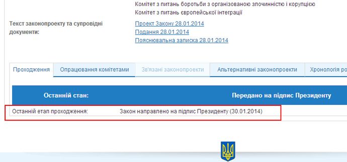Тепер закон має підписати президент Віктор Янукович. Додамо, що 30 січня керівник Державного управління справами з медичних питань Олександр Орда повідомив, що Янукович взяв лікарняне.