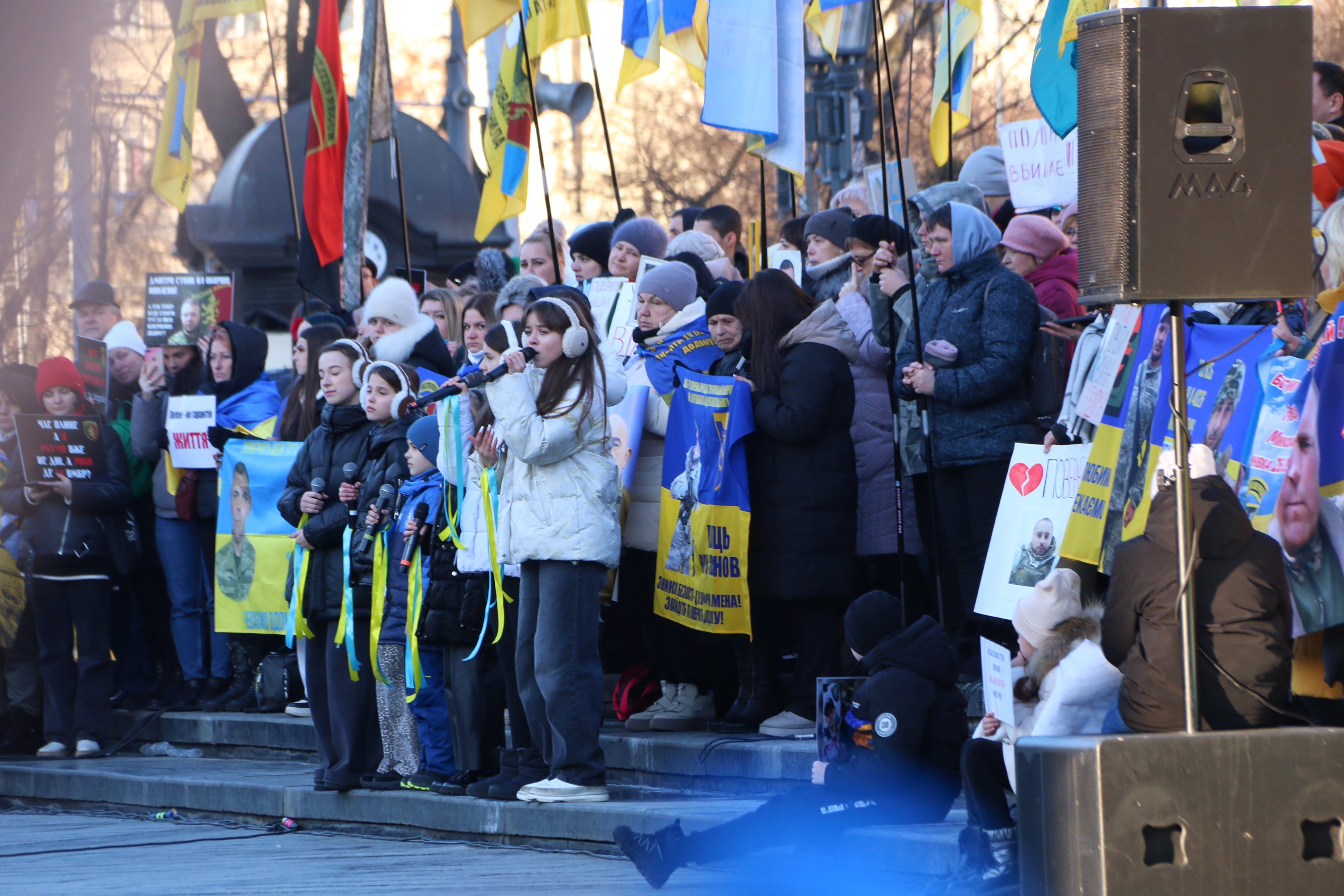 «736 днів – це два роки й п'ять днів. Це календар моєї сім’ї, який триває від січня 2023 року з того моменту, як чоловік перестав виходити на зв’язок. Такий підрахунок веде кожна присутня тут сім’я. Знати, що твій рідний у полоні, навіть якщо інформація не підтверджена Червоним хрестом, – це велика розкіш після життя у невідомості. Ба більше, поховати свого рідного теж розкіш. Ми переглядаємо всі можливі списки полонених та фото загиблих з надією віднайти бодай якусь інформацію», – сказала Ольга Пастер.