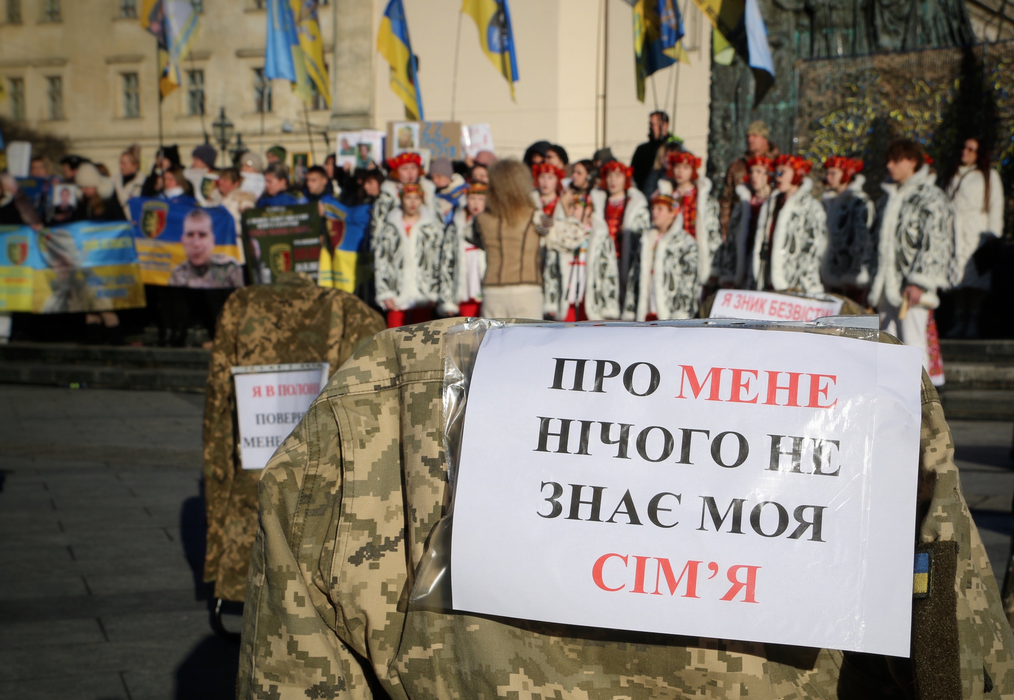 У суботу, 18 січня, біля пам’ятника Тарасові Шевченку у центрі Львова, родичі військовополонених та зниклих безвісти провели акцію під гаслом «Повернути кожного». Участь у події взяли кілька сотень людей. У центрі площі рідні військових встановили порожні стільці, на бильцях яких висіла військова форма, а також таблички з написами, які закликали повернути захисників додому. Організаторами акції-нагадування стали рідні військових із різних підрозділів Сил оборони України. Подія пройшла під гаслом «Повернути кожного».