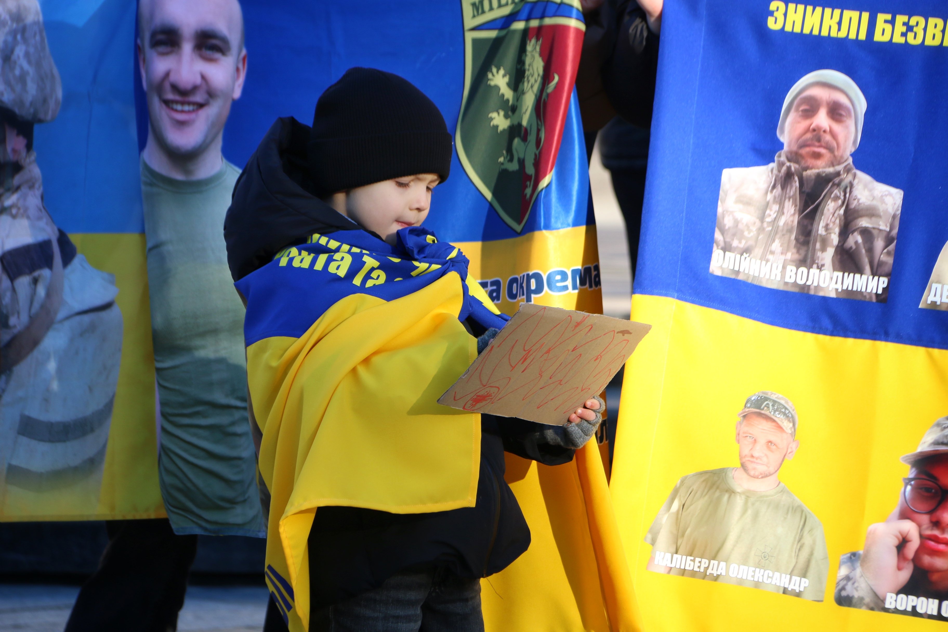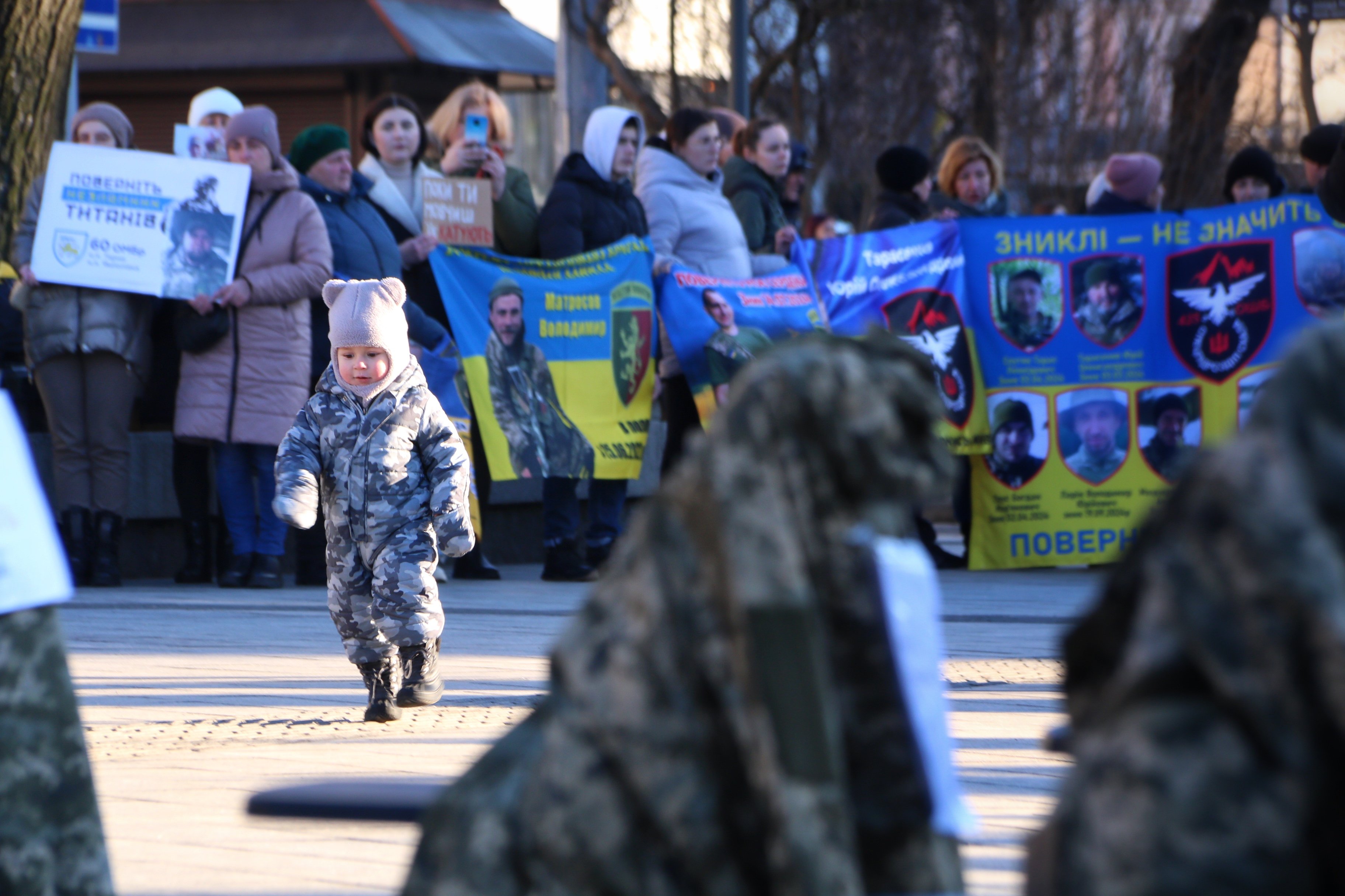 На акцію також прийшла Дарія Бондар – дружина зниклого безвісти військового. Вона зазначила, що поза увагою суспільства залишаються численні зникнення бійців об'єднаної штурмової бригади Нацполіції «Лють» в боях за Богданівку, Курдюмівку, Кліщіївку, Торецьк.