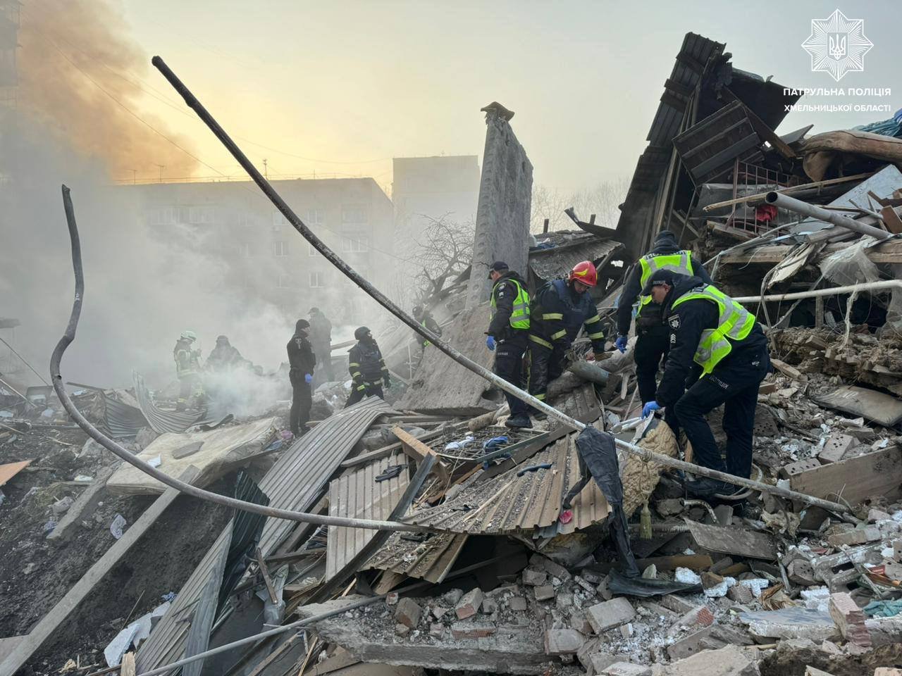 Пізніше виконувач обов’язків голови Хмельницької ОВА Сергій Тюрін повідомив, що внаслідок російської атаки в області загинула людина. Крім того, є постраждалі, наразі триває розбір завалів. Згодом кількість загиблих на Хмельниччині зросла до двох людей, щонайменше восьмеро отримали поранення.