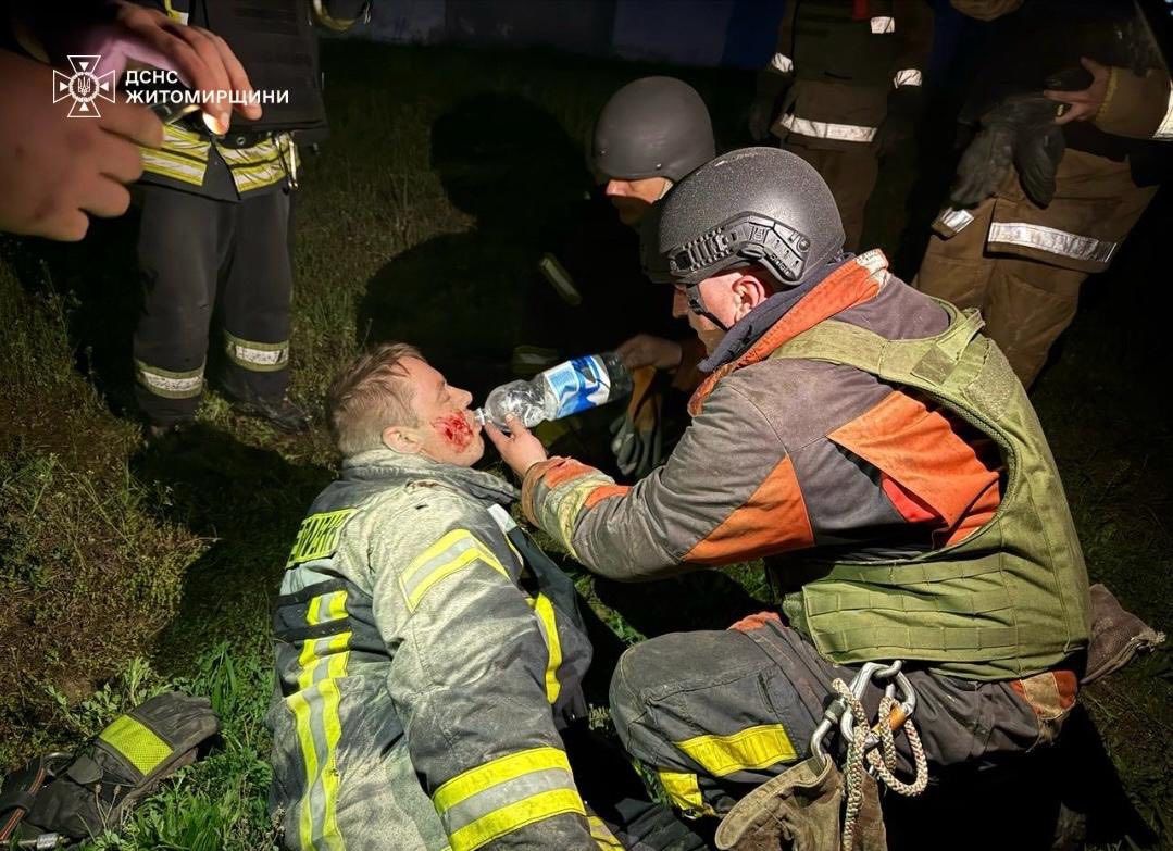 Житомирщина також зазнала удару з боку російських військ. Внаслідок ворожого обстрілу спалахнули пожежі у приватних гаражах, пошкоджено 3-поверховий будинок. Внаслідок повторного обстрілу поранений рятувальник та пошкоджено 4 одиниці техніки ДСНС.