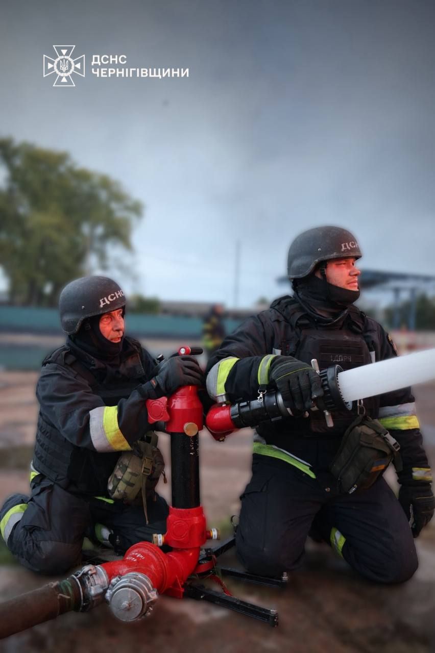 На Чернігівщині російський ударний дрон влучив у підприємство, на місці виникла пожежа. Через атаку в одному з районів обласного центру є перебої з електропостачанням.
