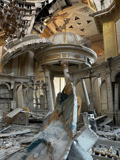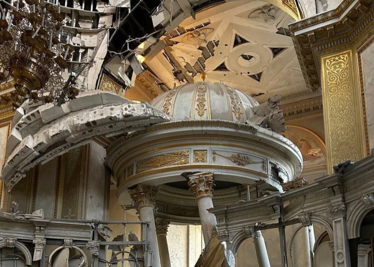 «Вночі 23 липня 2023 року під час російської терористичної атаки на місто Одесу ворожа ракета влучила в Спасо-Преображенський кафедральний собор. Пряме влучання ракети прийшлося у центральний вівтар, внаслідок чого частково зруйновано будівлю собору, перекриття трьох нижніх поверхів, значно пошкоджено внутрішнє оздоблення та ікони», – йдеться у заяві єпархії.