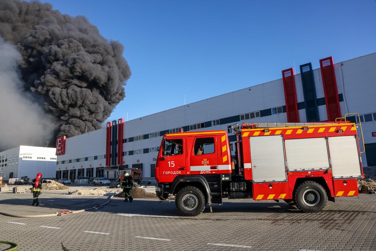 Міський голова Андрій Садовий поінформував, що густий дим над Львовом – це наслідок загоряння шин у цивільних складських приміщеннях, куди поцілив ворог.