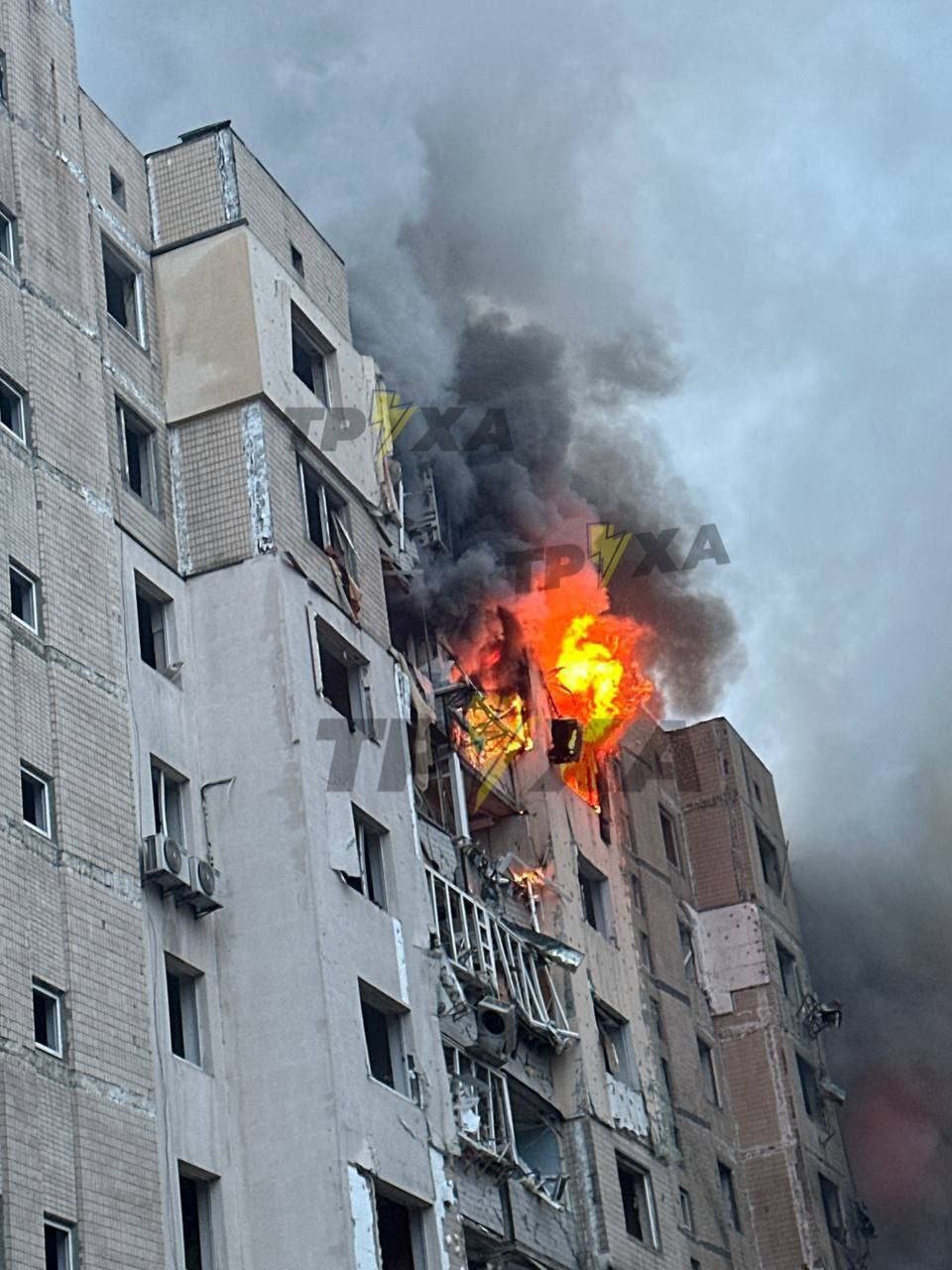 «10 постраждалих у багатоповерховому будинку в Соломʼянському районі, де сталося загоряння внаслідок ракетної атаки. Девʼятьох із них госпіталізували, одному надали допомогу на місці», – повідомив Віталій Кличко.