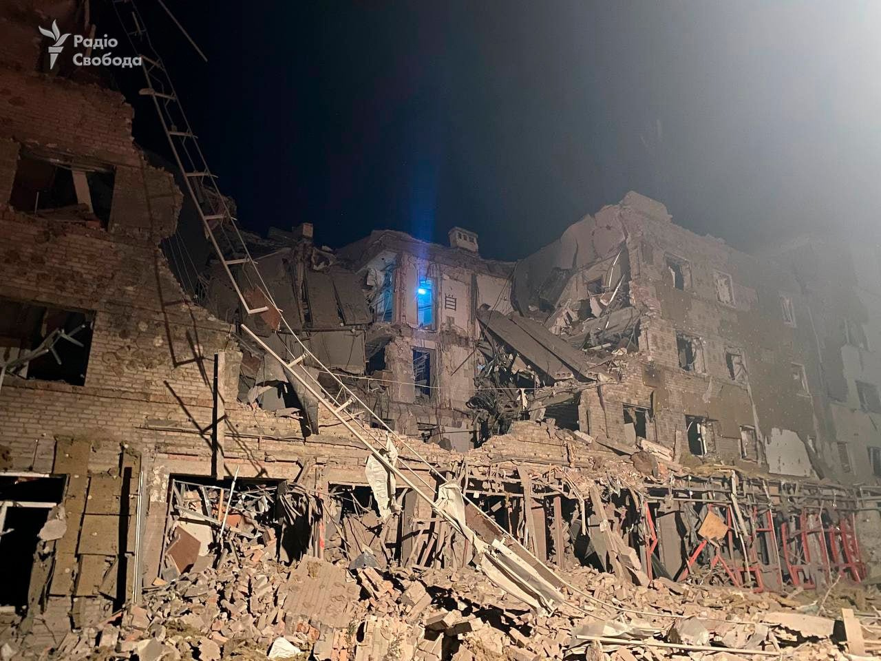 «Радіо Свобода» показало наслідки атаки на готель – на фото видно, що щонайменше три поверхи будівлі зруйновані, за попереднім даними, керованими авіабомбами. У сусідніх будівлях повибивало вікна, почалась пожежа – зайнялась трава. Пізніше у прокуратурі Донецької області підтвердили влучання снарядом ФАБ-250.