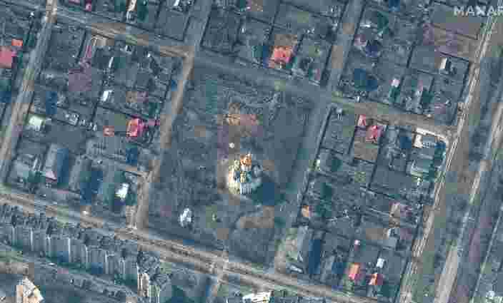Приватна американська компанія Maxar опублікувала в неділю, 3 квітня, супутникові знімки території Храму св. Апостола Андрія Первозванного у Бучі, де було знайдено масове поховання жертв російських загарбників.