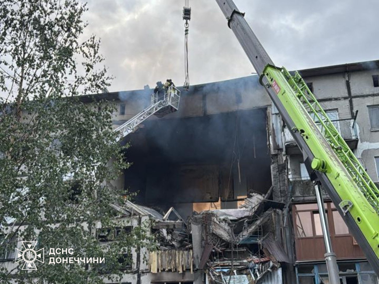 Через удар БпЛА частково знищені кілька поверхів будівлі, щонайменше двоє людей під завалами