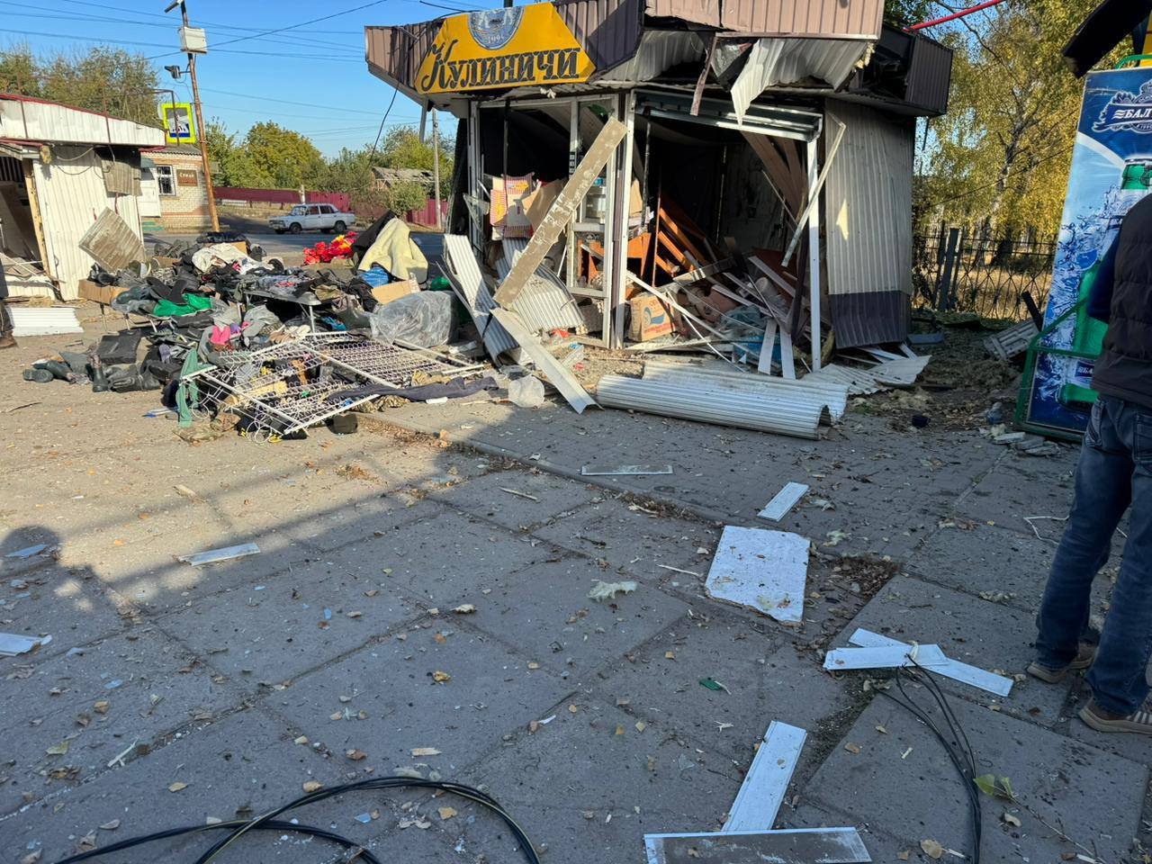 Внаслідок атаки частково зруйнована двохповерхова торгівельна будівля, пошкоджено 12 торгівельних кіосків та скління вікон нежитлових будівель. Росіяни поцілили поблизу місцевого ринку.