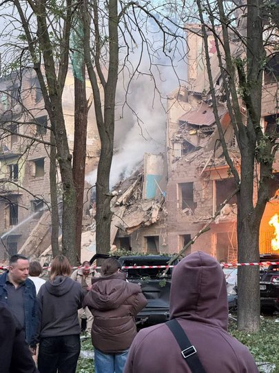 У пресслужбі ДСНС оприлюднили фото постраждалої п’ятиповерхівки із пошкодженим фасадом та вибитими вікнами. Згодом «Радіо Свобода» показала фото багатоповерхівки, на якому видно, що удар зруйнував частину поверхів у будинку.