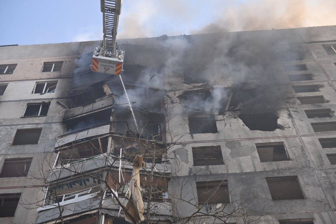 Президент Володимир Зеленський повідомив, що на місці влучання триває рятувальна операція. Між дев’ятим та 12-м поверхами багатоповерхівки пожежа й завали.