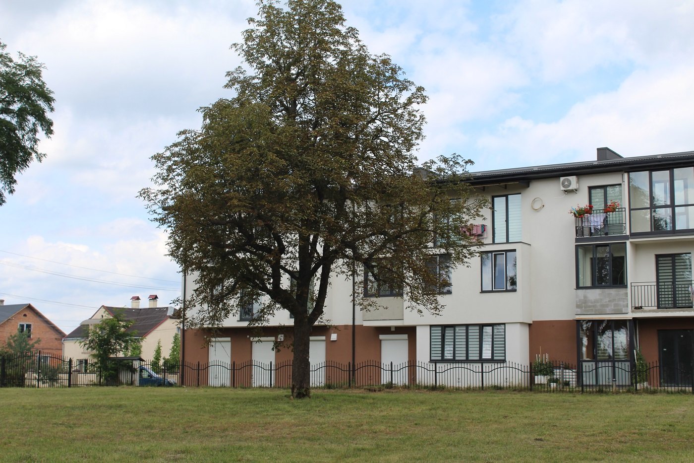 Ще один великий комплекс девелопер «Фест Житло» збудував упритул до сільської амбулаторії на вул. Шевченка, 64. За старою схемою – на ЛУН це житловий комплекс «Тарас Шевченко», а за документами – зблоковані житлові будинки, земля під якими записана на кількох власників.