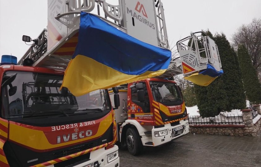 Офіційний представник німецької компанії Magirus в Україні передав дві автодрабини від виробника Magirus GmbH для рятувальників Тернопільщини. Висотна техніка виготовлена у Німеччині виключно для одного з підрозділів ДСНС України.