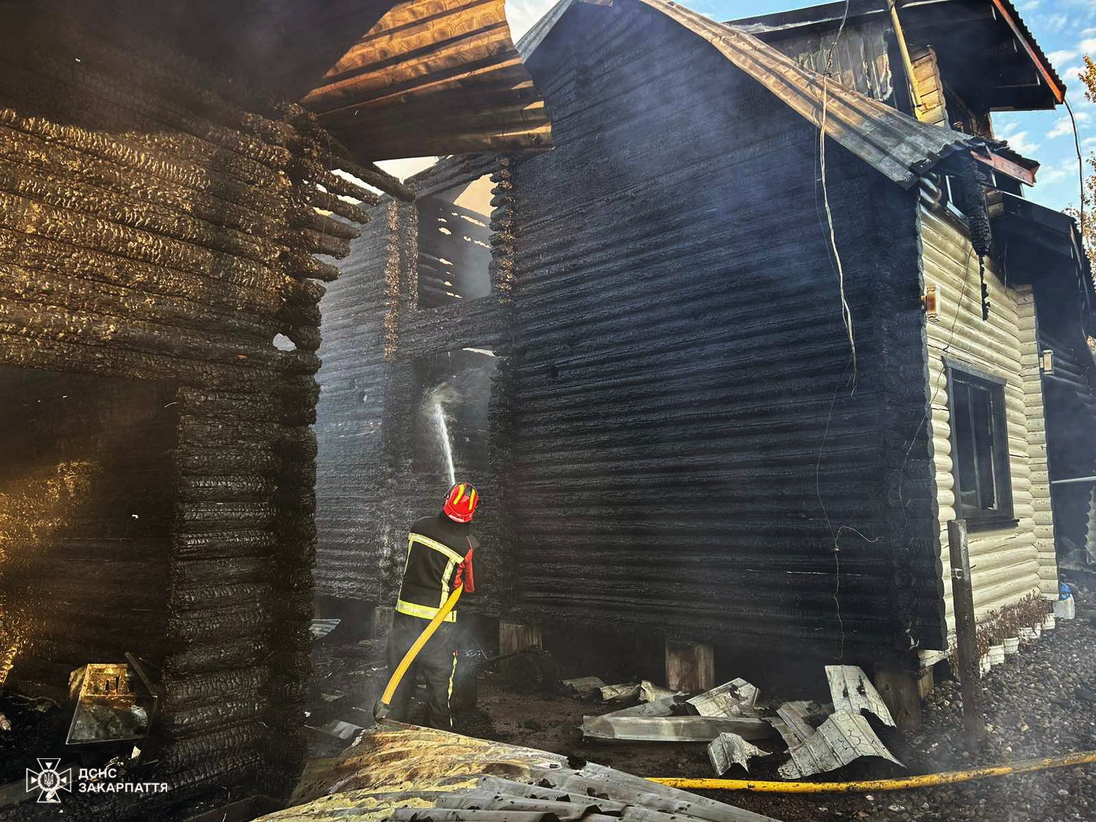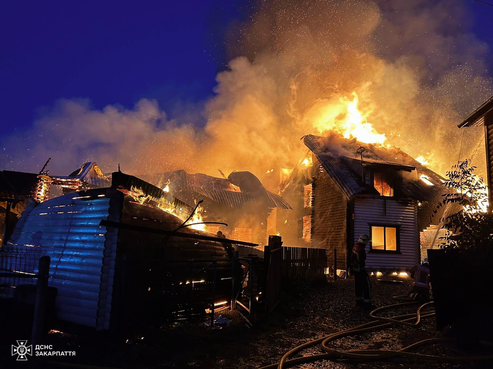 Рятувальники ліквідували масштабну пожежу на туристичній базі у Солотвині