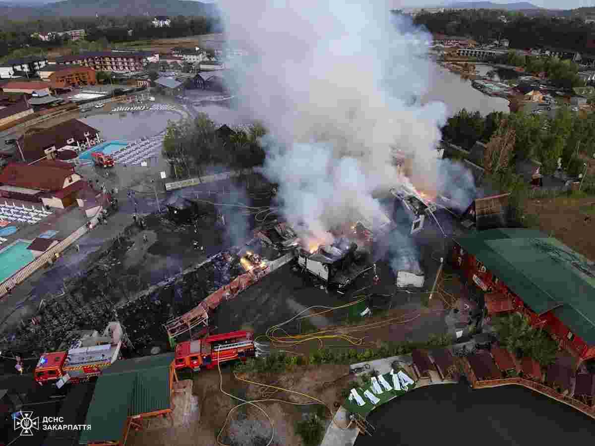 У неділю, 8 вересня, у селищі Солотвино Тячівського району загорілися дерев’яні будинки на турбазі «Кредо». Відпочивальники евакуювалися самостійно. Пожежу гасили 30 рятувальників за допомогою 6 одиниць техніки.