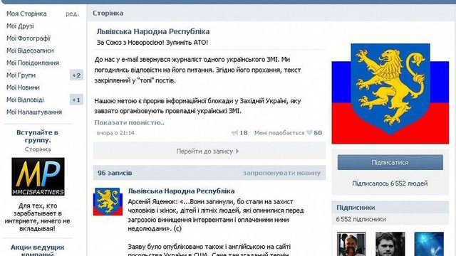 Прокуратура Львівської області порушила кримінальне провадження з приводу появи у російській соцмережі «ВКонтакте» спільноти «Львівська Народна Республіка». Справа порушена за статтею «посягання на територіальну цілісність і недоторканність України», що передбачає позбавлення волі на строк до трьох років.