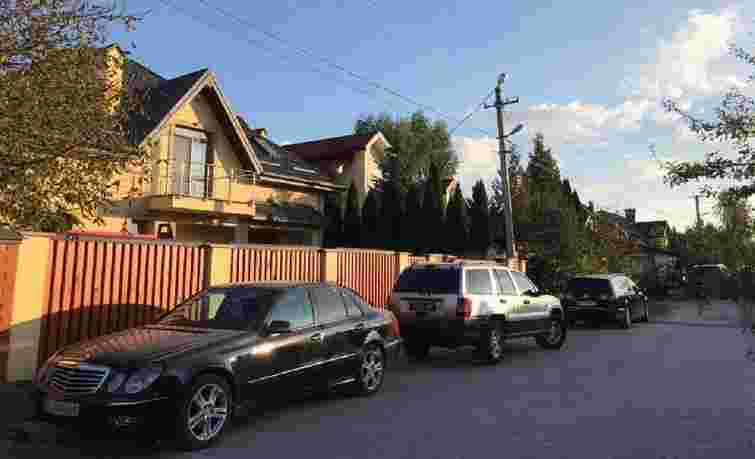 Автомобілі СБУ та військової прокуратури під будинком, записаним на дружину Володимира Доманського (фото Наших грошей. Львів)