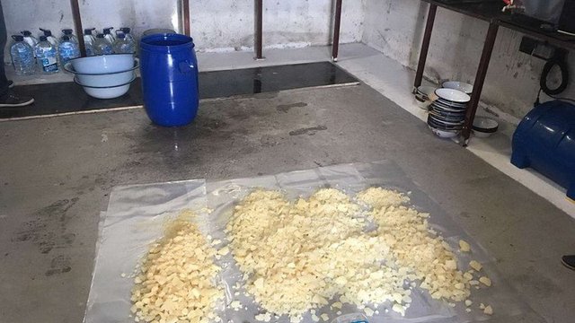 Також правоохоронці виявили майже триста кілограмів інгредієнтів та прекурсорів для виготовлення ще близько ста кілограмів метадону.
