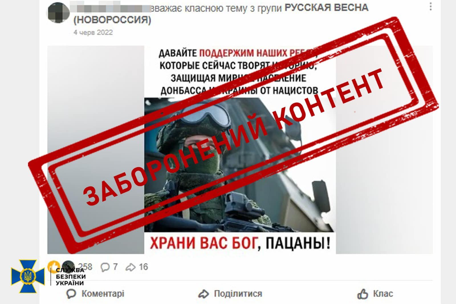 Як вказано у повідомленні СБУ Львівщини, з початком повномасштабного вторгнення росіянин, який тривалий час проживає на Львівщині, поширював у соцмережах антиукраїнські матеріали.