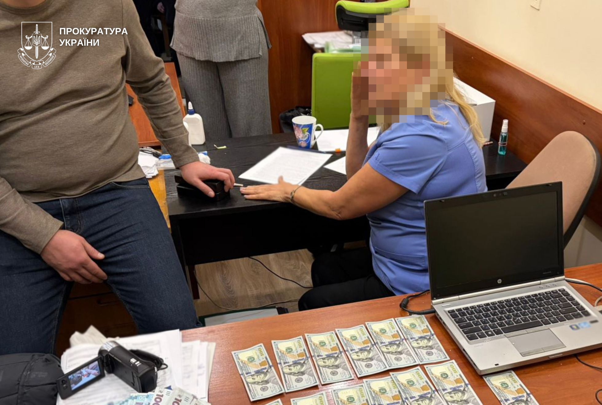 Зловмисницю затримали на гарячому на робочому місці одразу після отримання всієї суми неправомірної вигоди. Під час слідчих дій вилучили медичні документи з доказами протиправної діяльності.