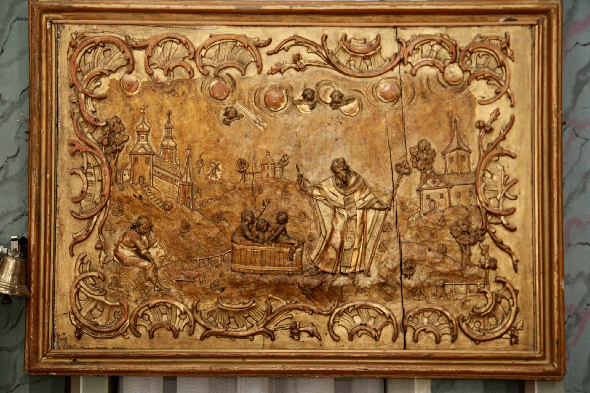 «У 1745-1760-х роках Бучач перетворюється на місто-резиденцію Миколи Потоцького: розбудовується палацовий комплекс, ансамбль нової площі Ринок, монастир василіян, церква Покрови, костел Успіння Діви Марії, для бічного вівтаря якого Пінзель теж різьбить скульптури святого Франциска Борджіа і святого Вікентія де Поля. У ці роки він виконує антепедії [передня частина вівтаря – ред.], царські врата і дияконські двері, алегорії Мужності, Мудрості, Віри і святого Товія для вівтарів церкви Покрови Пресвятої Богородиці. В антепедіях він зображує панорами Бучача, храми і брами, чим засвідчує пошану до свого міста», – зазначає Олег Рибчинський у Pinsel-AR.