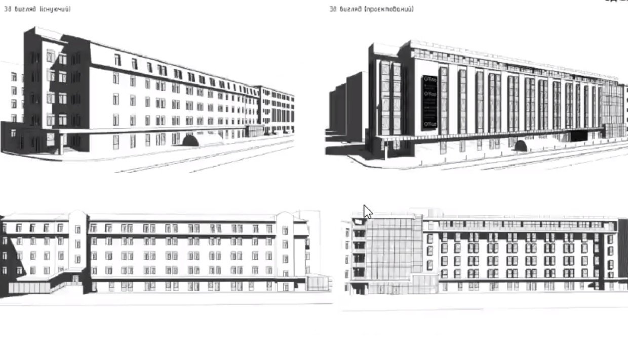 Йдеться про корпус «Кінескопу» на вул. Героїв УПА, 73, окремі приміщення якого орендують під магазини і кафе. Під час реконструкції прибудують частину будівлі зі сторони двору, а також реконструюють мансарди під повноцінний поверх. Загалом оновлена будівля буде п’ятиповерховою, її висота не має перевищувати 25,5 м.