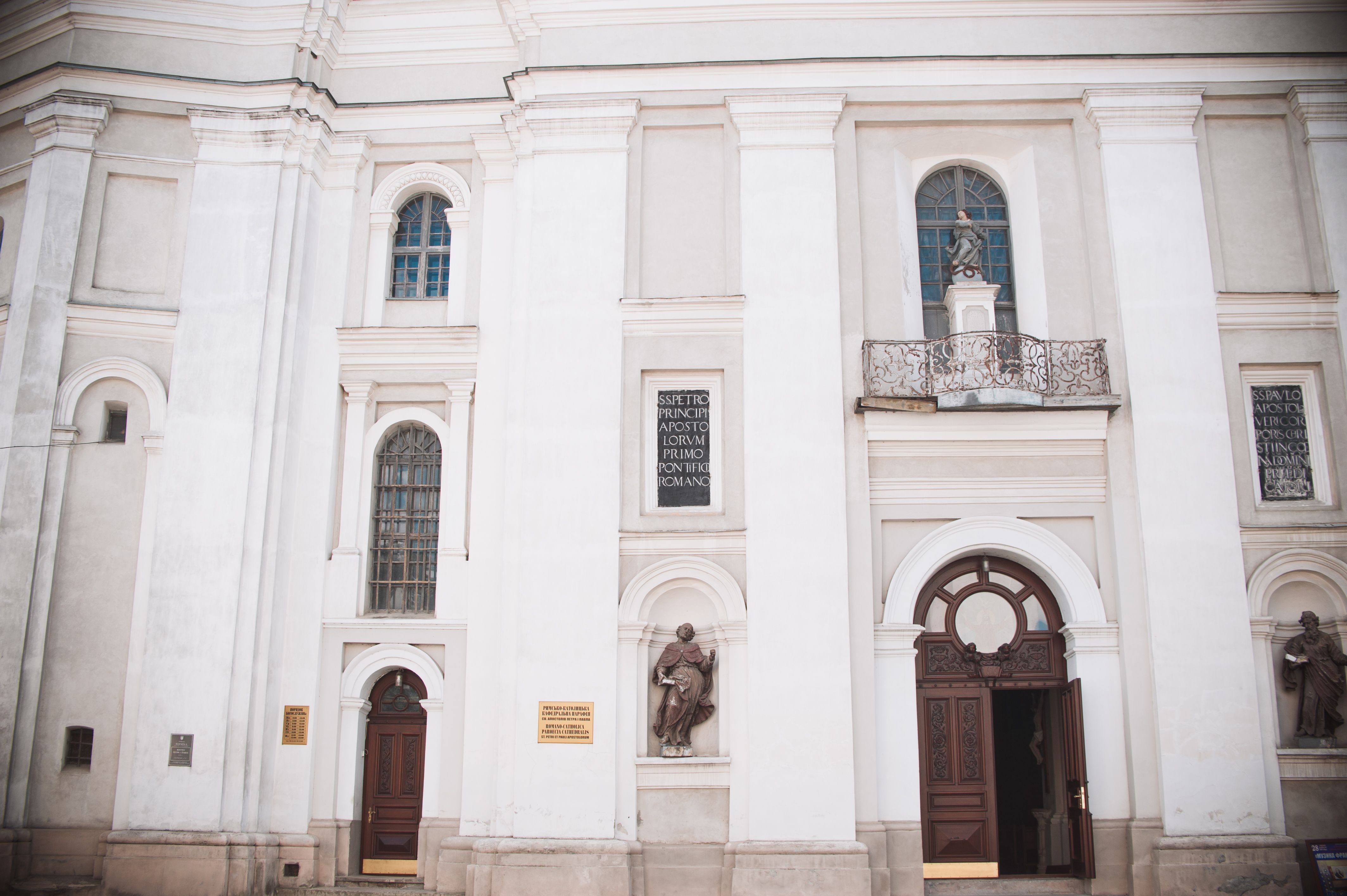 Святотроїцький кафедральний собор розташований на Градному узвозі, 1, Кафедральний костел святих апостолів Петра і Павла – на вул. Кафедральній, 6.