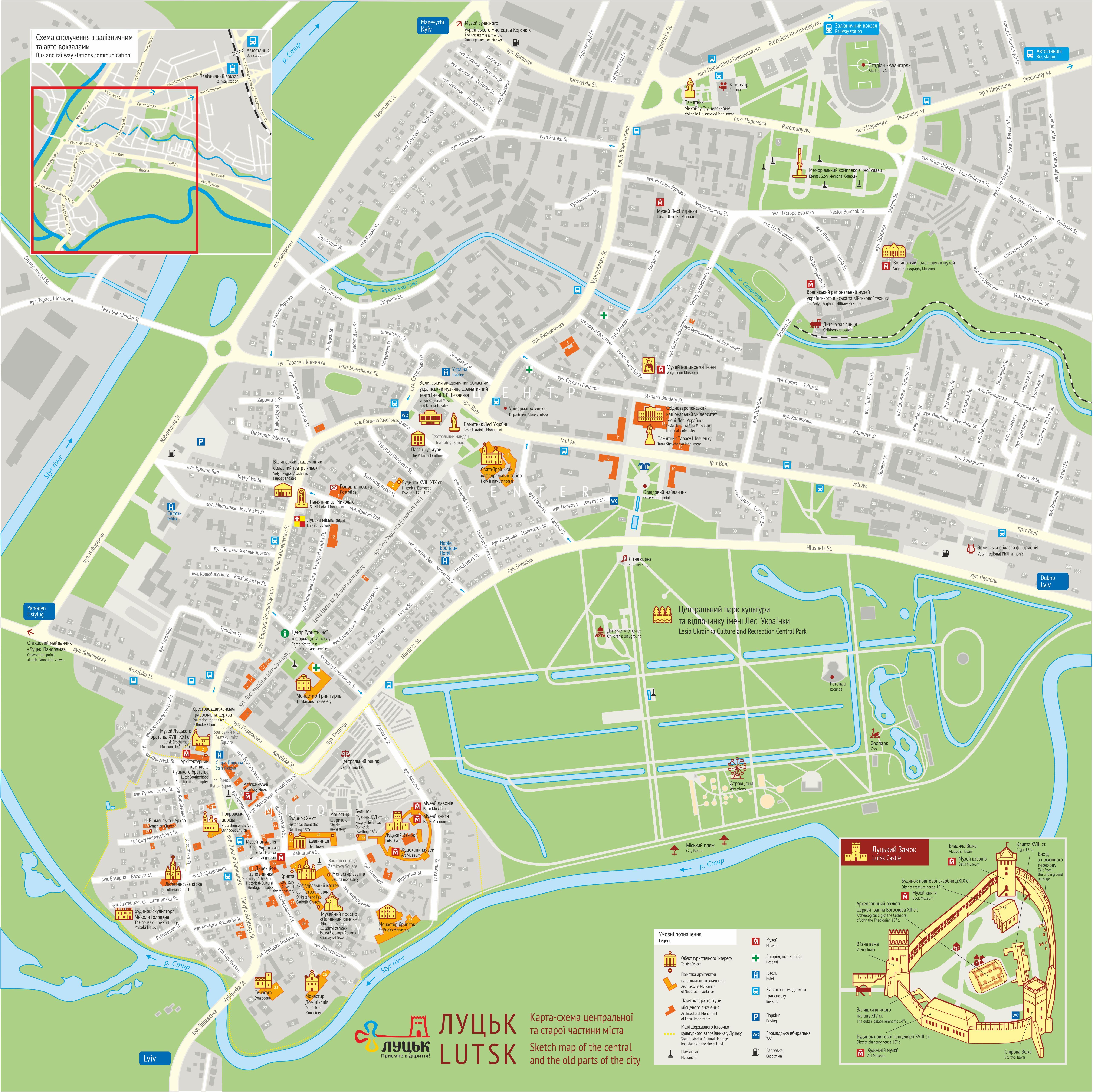 Карта історичної частини Луцька з памʼятками (зображення Visitlutsk)