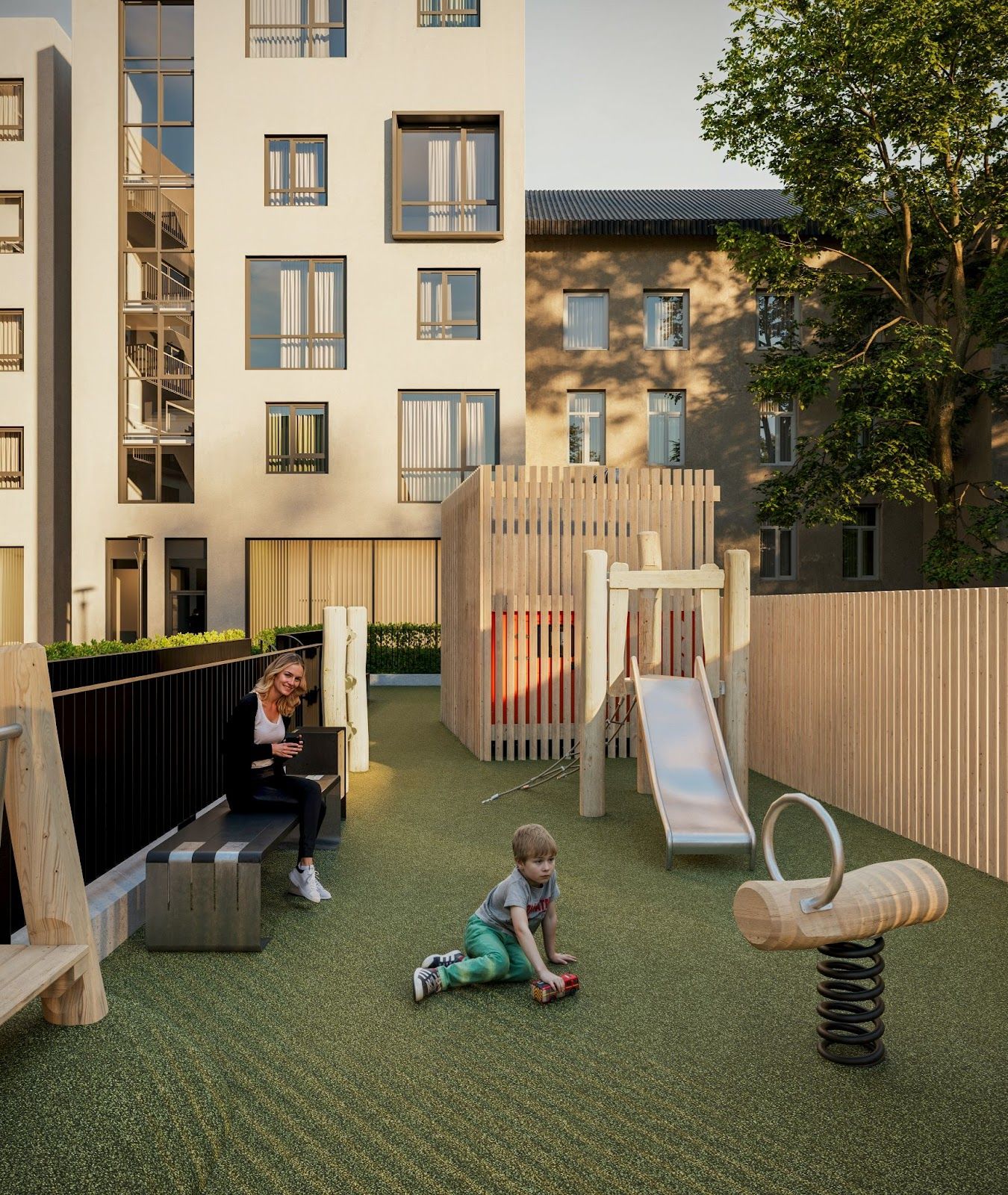У Harry буде власний англійський сад, що включатиме як зелені зони для спокійного відпочинку, так і місця для активного дозвілля. Зокрема, на облагородженому подвір'ї планується дитячий майданчик з гірками, гойдалками, настільним тенісом та навіть стіни для скелелазіння.