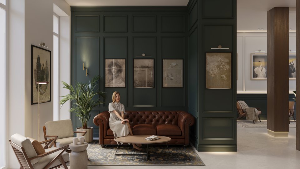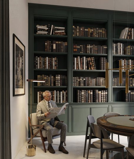 Всередині ЖК буде розкішний хол, облаштовані кімнати для відпочинку, а також власна бібліотека, де можна як усамітнитись із книгою, так і провести бізнес-зустріч.