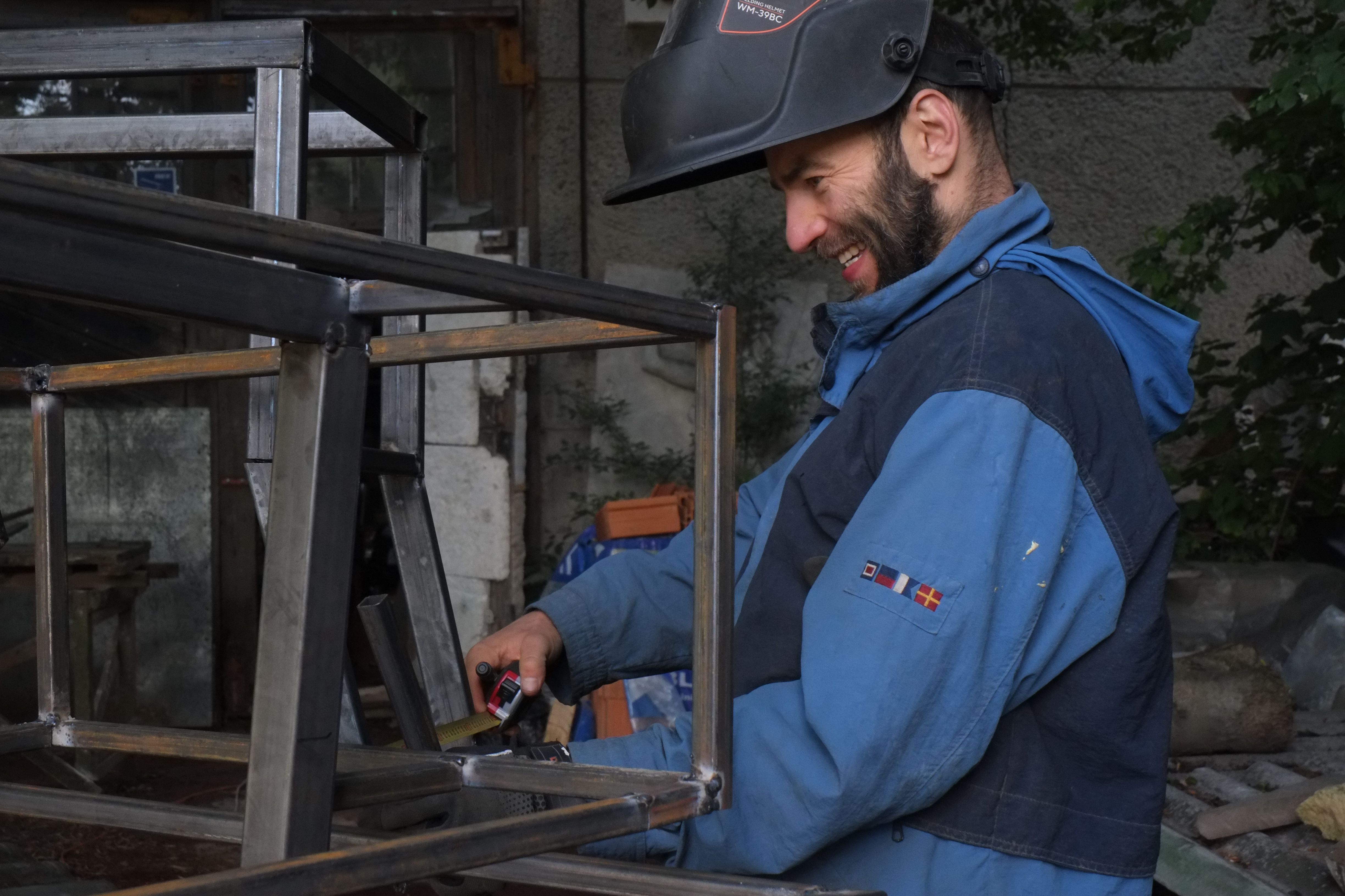 Біля неї вже чутно мистецький дух – в садочку всіяно скульптурами, а одразу перед входом усміхнений Володимир Семків в масці зварювальника, рукавицях і робочій куртці зварює металевий каркас майбутньої скульптури. Тепер все склалося.