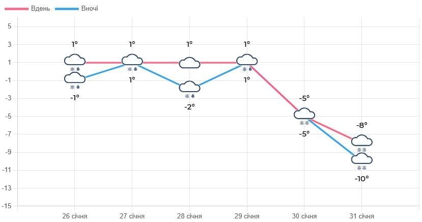 Прогноз погоди до кінця січня (графіка Львівського гідрометцентру)