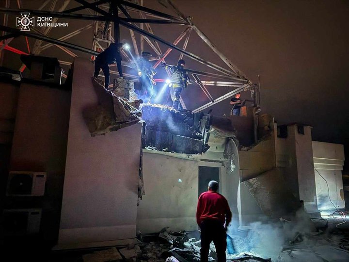 У Броварах на Київщині рештки безпілотників впали на 25-поверховий житловий будинок. Внаслідок чого загорілася крівля та ліфтове приміщення.