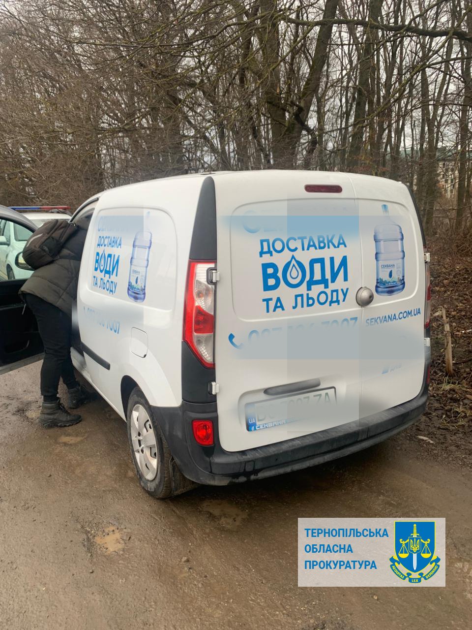 Повідомлення про викриття незаконного видобутку і виробництва бутильованої води опублікувала також прокуратура Тернопільщини. На фото прокуратури видно автомобіль, на якому розміщений логотип тернопільської фірми «Секвана», яка спеціалізується на доставці води та льоду, про що також свідчить напис на дверцятах авто. Також видно й адреса сайту цієї фірми. Саме службових осіб цього підприємства підозрюють в незаконному видобутку води. За даними YouСontrol цим підприємством володіє родичка Тешнера – Анастасія Тешнер.