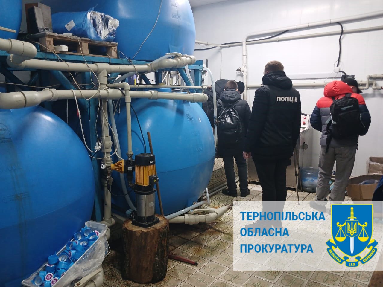 Слідчі поліції повідомили про підозру двом жителям Тернополя в незаконному видобутку та продажі води зі свердловини. Зловмисники влаштували незаконне виробництво та фасування питної води на території санаторію неподалік Тернополя. Вже готову продукцію реалізовували під маркою відомої торгової фірми, повідомили в поліції Тернопільщини, у вівторок, 14 січня.